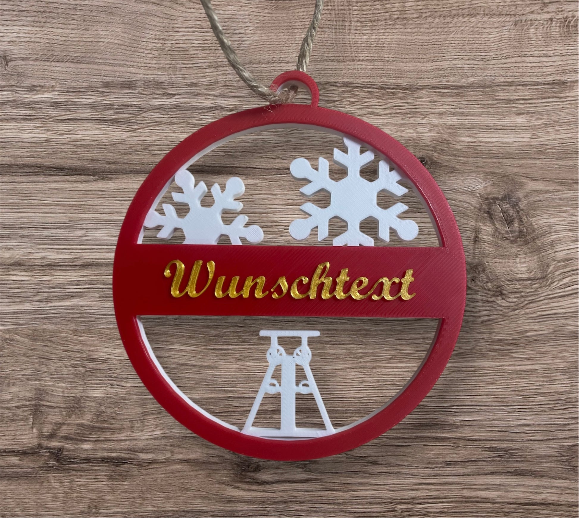 Weihnachtsbaumschmuck – Förderturm mit Wunschname